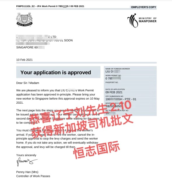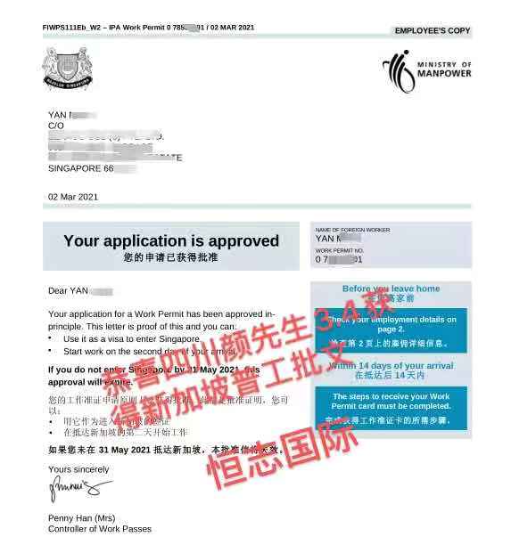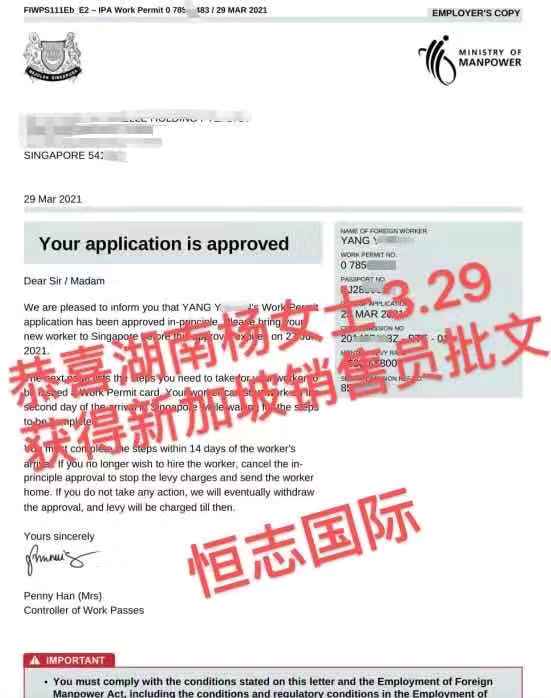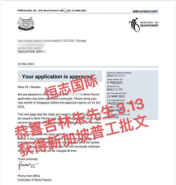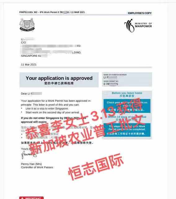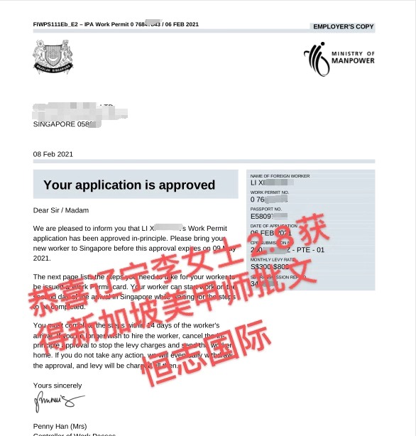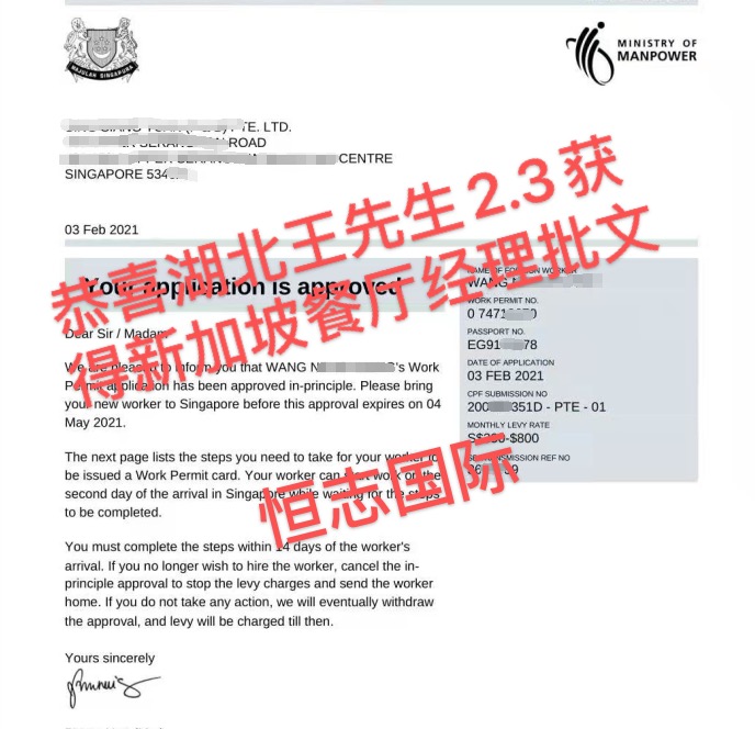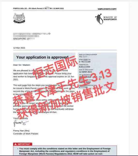 恭喜湖北王先生3.29获得新加坡普工批文