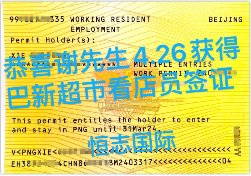 恭喜谢先生4.26获得巴新超市看店员签证
