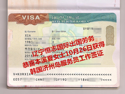 恭喜王女士获韩国济州岛服务员工作